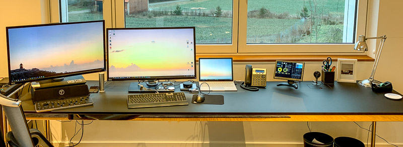 I found that the tiny Airtame 1 devices are perfect for that. I am using the previous version 1, they have recently released a version 2 model that I haven’t tested yet. This is a wireless screen adapter for PCs and mobiles and is intended for use in meetings rooms, but it works just as fine on my desk. Inside it uses a Freescale 1Ghz ARM and 512 MB of RAM and can run a display at up to 1920×1080 (here is a look inside). A new Airtame 1 costs €279 on Amazon and you can get used ones for around €120 on ebay.