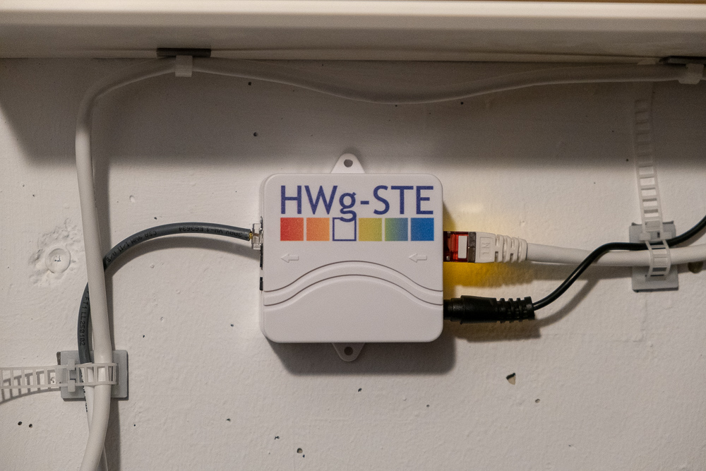 The actual sensor is connected with a cable to the small network box (it is the smallest box in this comparison). It has a web interface with internal data recording and offers SNMP, Modbus, syslog, email and http push.