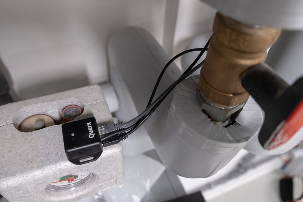 The Querx PT 100 is an Ethernet-based temperature sensor by German company egnite GmbH. The actual sensor is connected with a cable to the small network box (it is the smallest box in this comparison). It has a web interface with internal data recording and offers SNMP, Modbus, syslog, email and http push.
