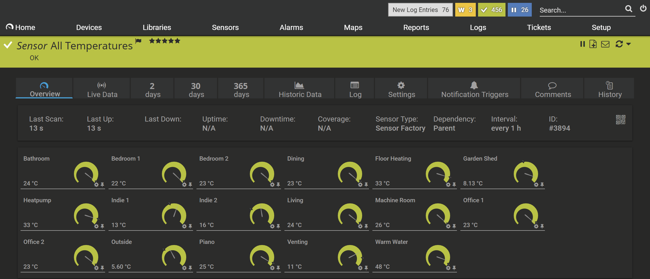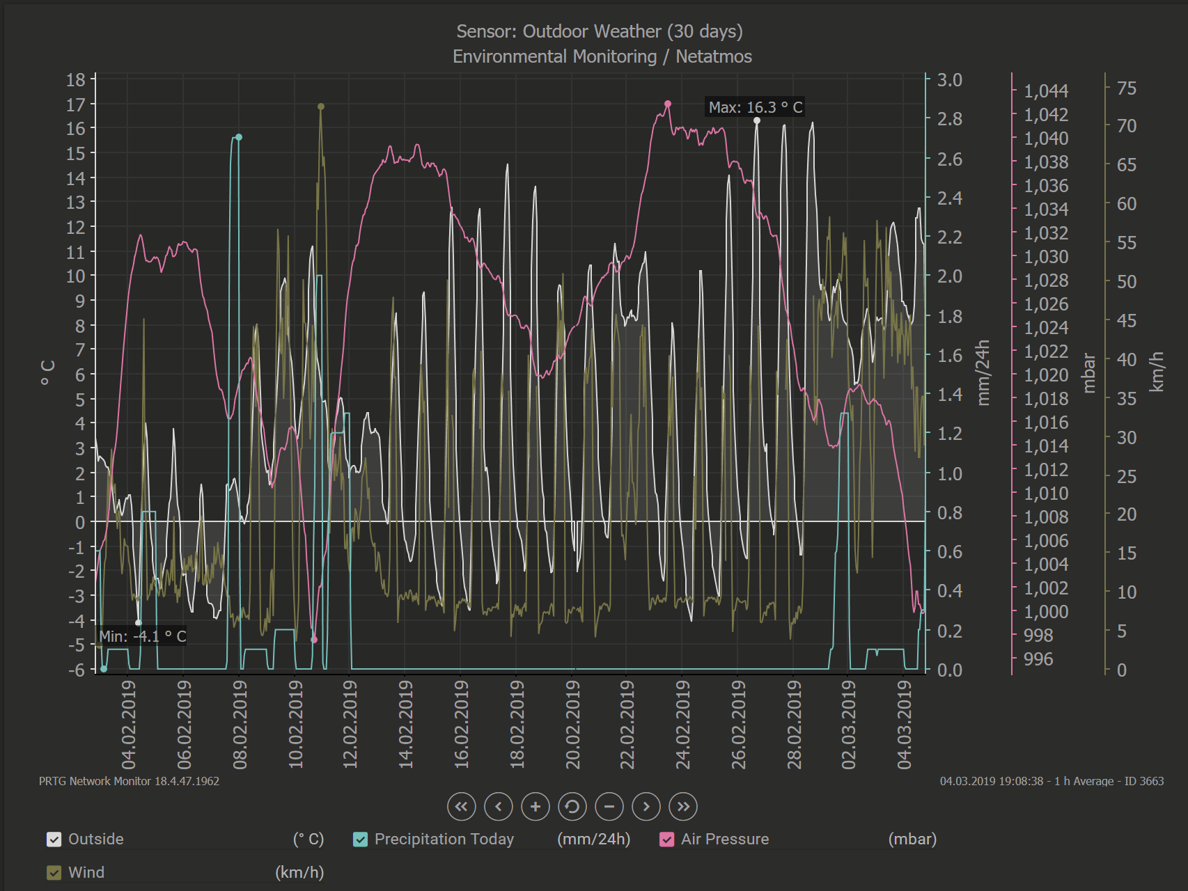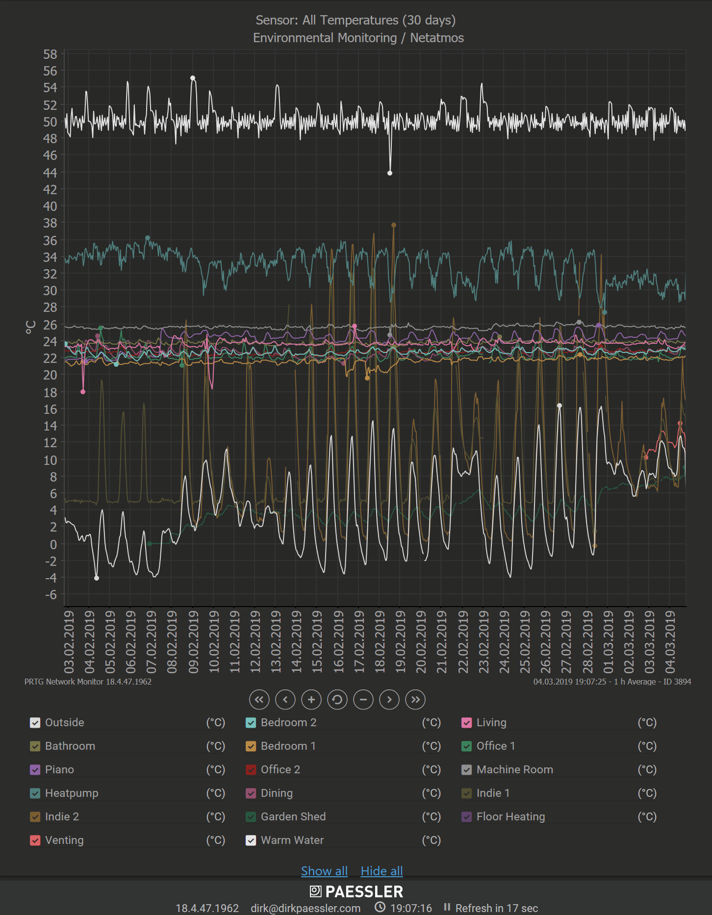 As the founder of “The network monitoring company” Paessler AG it came quite natural to me to not only monitor our home network but also various environmental metrics in our family home. We had moved into our new home a year and a half ago and having temperature data series has been quite helpful to do the fine tuning and bug-fixing of the heating and venting systems.