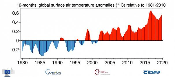 Starten wir mit einer aktuellen schlechten Nachricht: Bereits mit den Daten bis Oktober 2019 ist klar, dass 2019 das zweit-wärmste Jahr der Datenaufzeichnung sein wird und damit die letzten 5 Jahre die 5 wärmsten Jahre in den Aufzeichnungen sind.