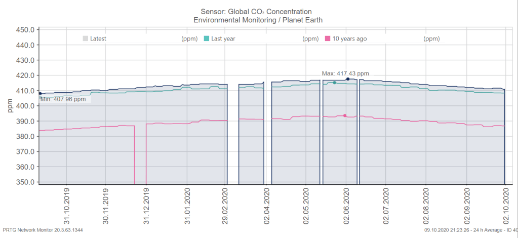 In March 2019 I wrote a blog post about a new sensortype for PRTG Network Monitor that allows users of this software to keep an eye on the CO₂ concentration of the atmosphere. My idea was to create more visibility for this important metric by adding this sensor to dashboards of the monitoring software PRTG.