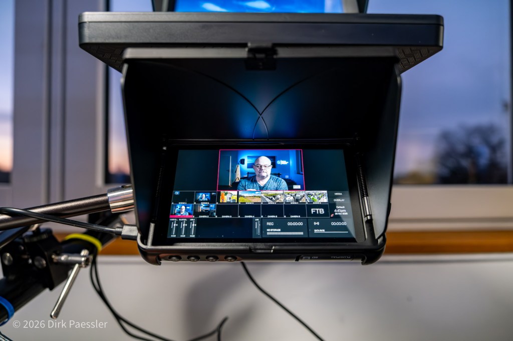 - a dedicated production screen with preview of video and audio levels (I am using a small HDMI preview monitor for this)
