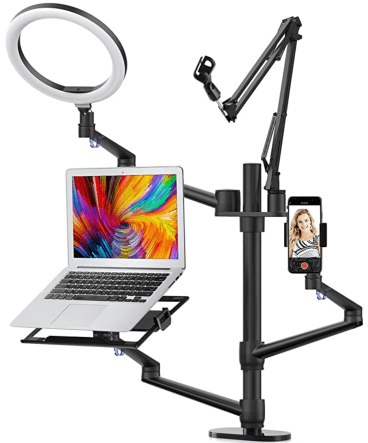 Most of my equipment is mounted using the Selfie Desktop Live Stand Set 6-in-1. This keeps my desktop uncluttered.