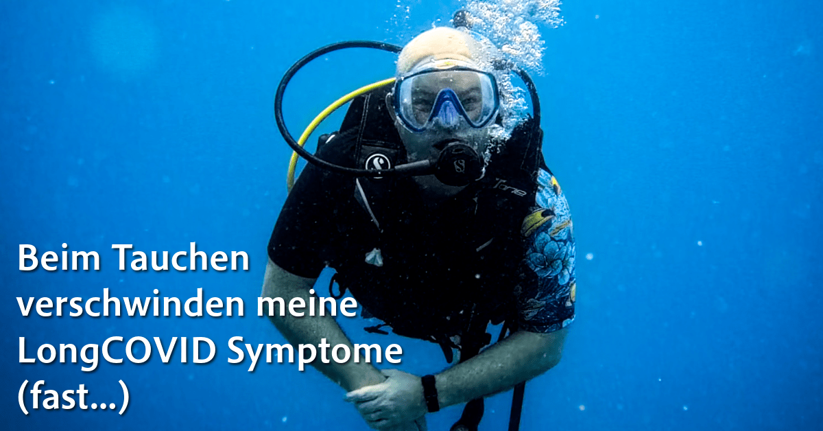 Zum dritten Mal Tauchurlaub mit LongCOVID. Zum dritten Mal das Gleiche: Nach den ersten Tauchgängen verändert sich etwas. Mit jedem Tag wird es deutlicher. Nach zwölf Tagen mit täglich 1-2 Tauchgängen (Nitrox 32%, 20-30 Meter tief, knapp 1h pro Tauchgang) fühle ich mich augenblicksweise gesund.